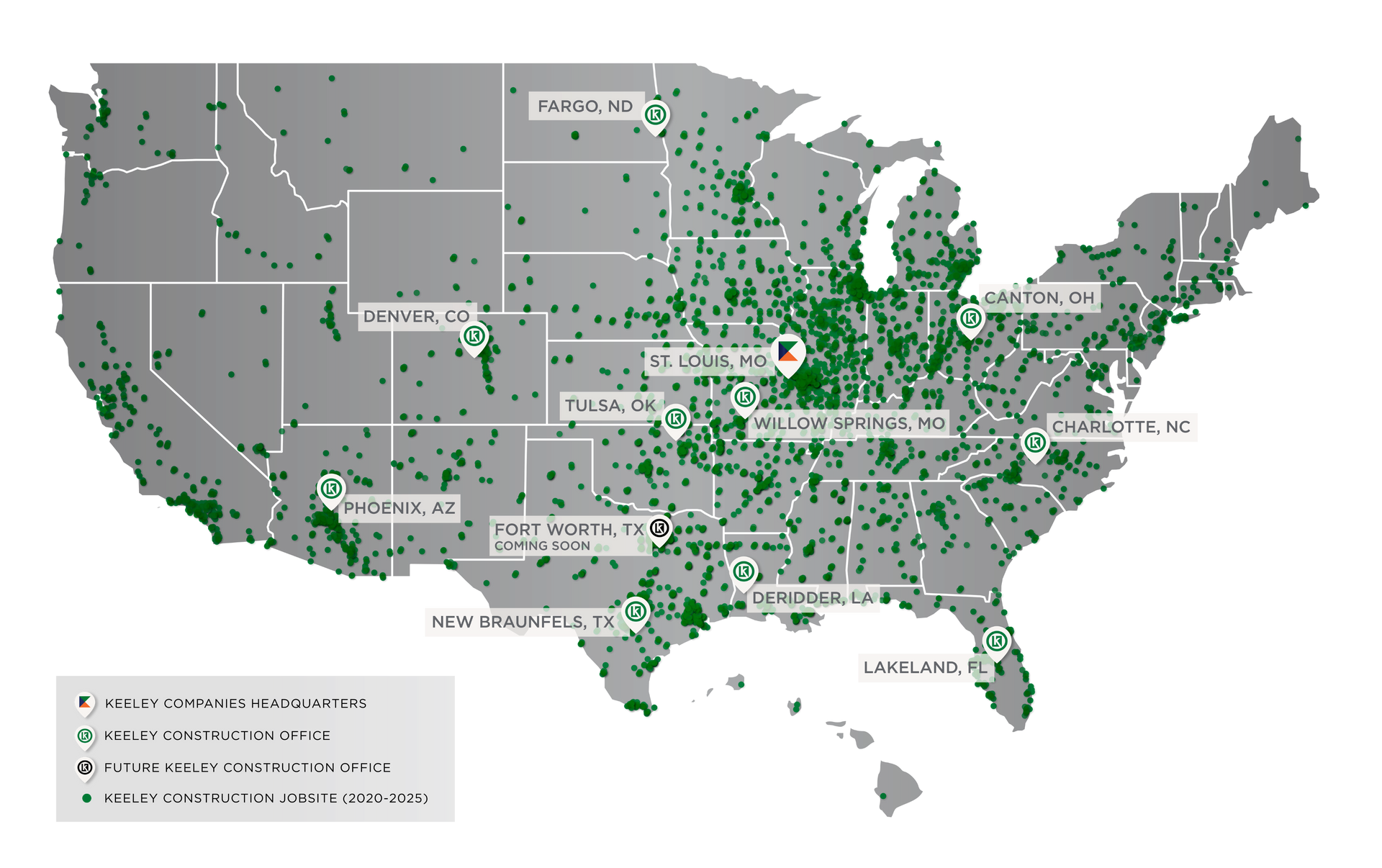 Keeley Construction, established in 1975 by Larry Keeley, began as a small, family-owned paving company. Today, with over 1,500 dedicated Keeley'ns, our enterprise has evolved into a powerhouse in construction with four different business units: Civil, Paving, Building, and Industrial. Despite our growth, Keeley Construction still upholds the same core principles spoken by our founder decades ago, "Quality, Safety, and Service never go out of style."