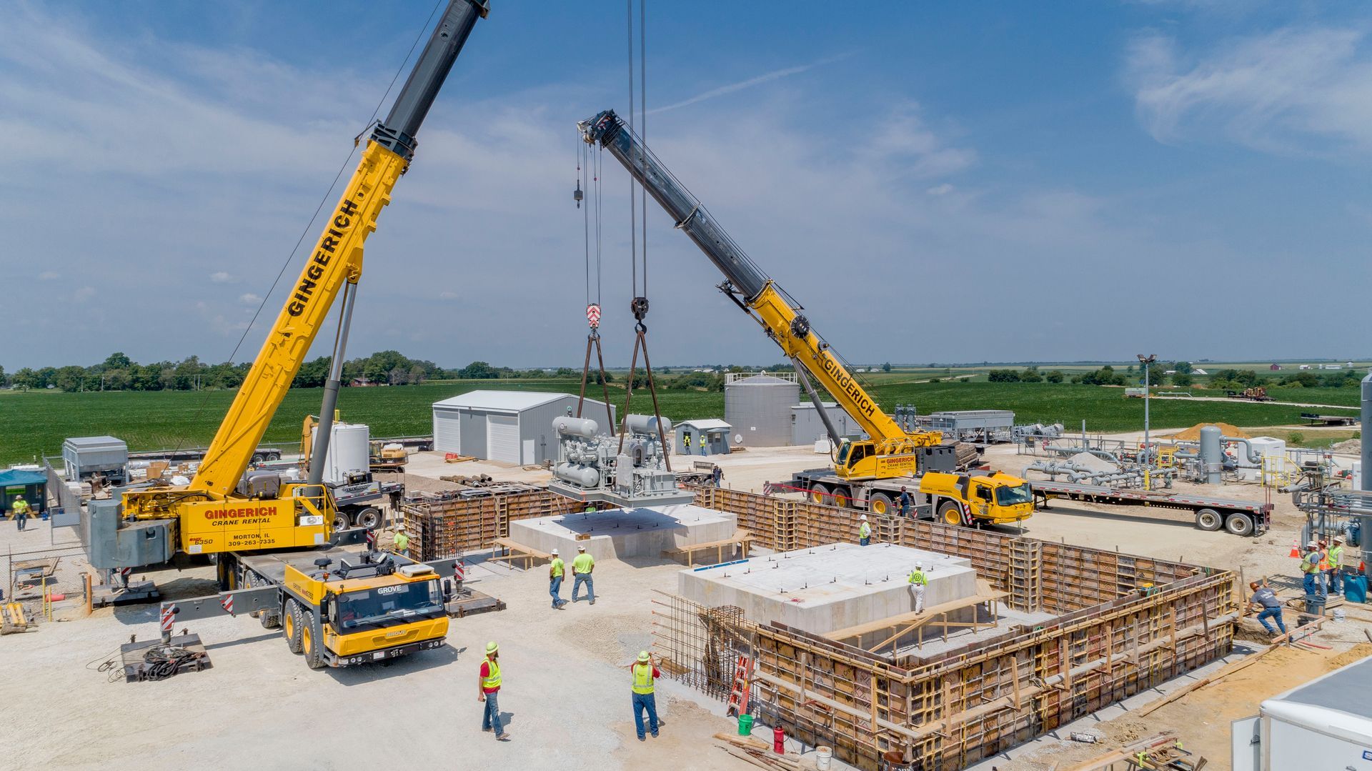 Ameren was in need of larger compressors to handle the demand for natural gas. Keeley was selected to help them achieve this by pouring the foundations, setting the compressors, and erecting a building around the newly set compressors. Ameren stores their natural gas in rock beneath the ground, and in addition to distribution, the new compressors also provide storage, pumping the gas down into these natural underground pockets. One major challenge of this project was the process of setting two 98-ton compressors from 60 feet away. To accomplish this, Keeley used two cranes (350tn and 300tn) to simultaneously pick up a compressor and place it onto its foundation. Despite being on a tight schedule, Keeley had the compressors ready to accommodate the demand for natural gas on time and within budget.